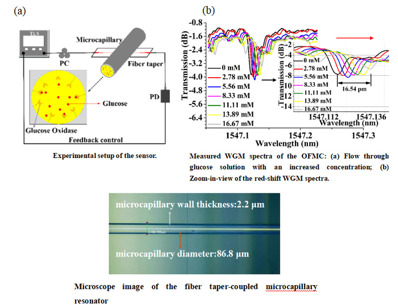 张祖兴教授团队万洪丹老师实现了一种基于高Q回音壁模毛细管微腔低浓度葡萄糖生物传感器