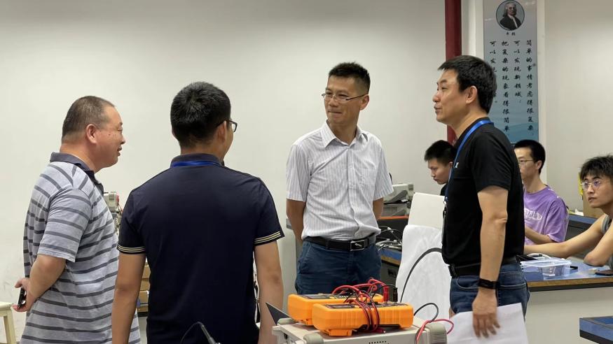近日,黑料 院长赵强教授、副院长程勇教授以及教务处副处长肖建教授、学院创新中心周双京老师来到教三电工电子实验教学中心,看望2021年全国大学生电子设计竞赛参赛学生。