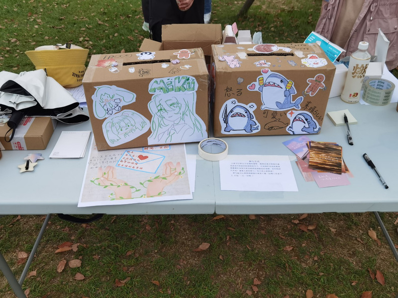 活动前期,青协各部门运用多媒体、公众号等形式进行活动宣传,准备好精美的心愿箱与明信片鼓励同学们的参与,并为每一位参与者准备酒精湿巾、口罩等作为奖励。为丰富活动形式和加强参与度,共设置了四处活动地点:南三食堂入口,菊苑撸猫处(这个地方是不是换个表述比较好?),图书馆大草坪,瑞幸巴士。在相关活动地点,活跃着的卡通玩偶吸引了过往的同学,他们在自助或是志愿者的帮助下写下心中的期待与热爱。经过精心挑选后,部分将制作成祈福牌,挂于校园内,将爱与希望传递于每个人的心间。