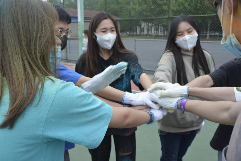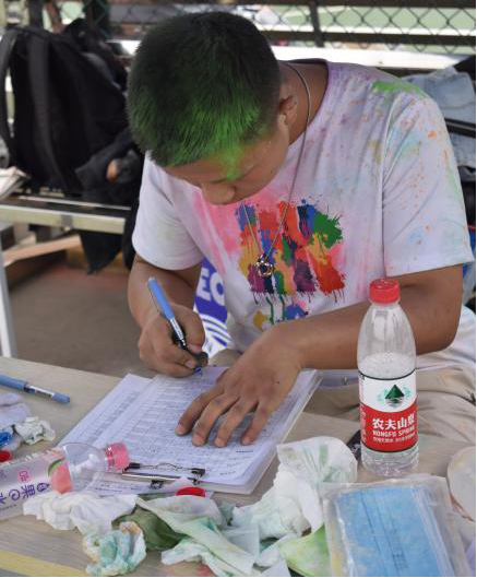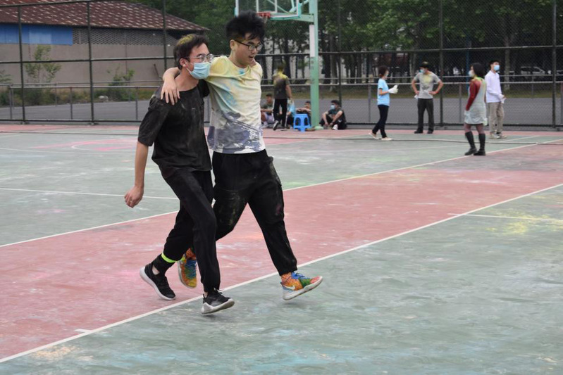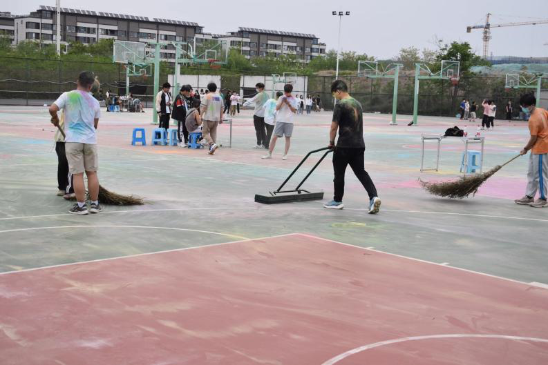 比赛之余,同学们用事先分发的彩粉相互喷洒,大家一起肆意奔跑、放声欢笑,为彼此留下最绚丽的彩色青春印记。活动在一张张充满笑容的合影中圆满结束。赛后,工作人员统计了比赛结果,并和同学们使用扫帚和推水器共同打扫了彩色粉末,使活动场地整洁如初。参赛的同学们在活动中不仅收获了欢乐,也获得了劳动体验、习得劳动本领。同学们自觉维护校园美景,涵养个人美德,实现了“创造美、感受美、延续美”的劳动教育目标。