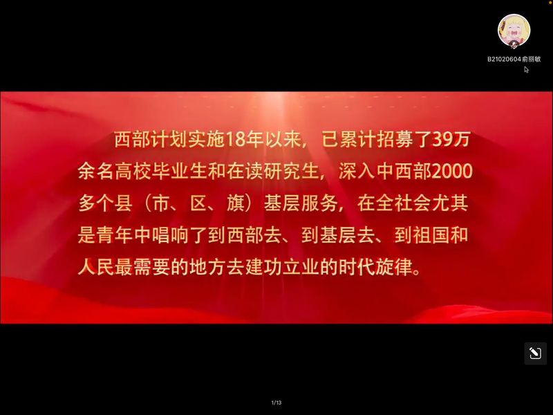 本次课程让同学们更进一步地了解了西部计划。希望通过本次授课,同学们可以积极去了解西部计划的志愿服务,并成为一名敢于担当的志愿者,在青春的赛道上奋力奔跑。