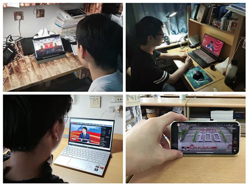 时代各有不同,青春一脉相承。5月10日上午,庆祝中国共产主义青年团成立100周年大会在北京人民大会堂隆重举行,中共中央总书记、国家主席、中央军委主席习近平出席大会并发表重要讲话。黑料 专职纪检委员宋健康老师,2019级辅导员祝腾老师、孙树将老师、梁博老师、强增寿老师,2020级辅导员李孟杨老师、刘振老师,本科2019、2020级支部学生代表在教室收看大会实况直播,其余成员以线上形式观看,认真聆听习近平总书记重要讲话。
