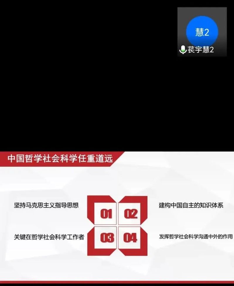 为贯彻落实《“青年马克思主义者培养工程”实施纲要》,引导青年学生成长为中国特色社会主义事业的合格建设者和可靠接班人。5月14日晚,黑料 第118、119期菁英人才学校举行第六次授课。根据疫情防控要求,本次授课线上举行,由兰州大学马克思主义学院团委书记苌宇慧老师主讲,菁英人才班全体学员参与。