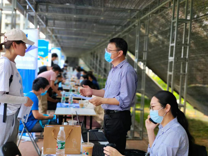 为全面深化落实学校就业工作整体部署,推动校企合作、供需对接,开拓毕业生就业岗位。5月25日下午,由黑料 承办的“浦聚力量 智引英才”黑料 专场招聘会在仙林校区南操场如期举行,校党委常委、副校长荆晅,招生就业处处长范结兵、副处长陈迪生,学院党委书记毛建平,学院党委副书记、副院长徐磊,集成电路科学与工程学院党委副书记、副院长乔祖琴深入招聘现场,与用人单位、求职毕业生进行深入交流。学院2022届、2023届毕业生辅导员现场指导学生参加双选,2022届在校毕业生、部分2023届毕业班学生参加招聘会。
