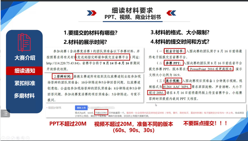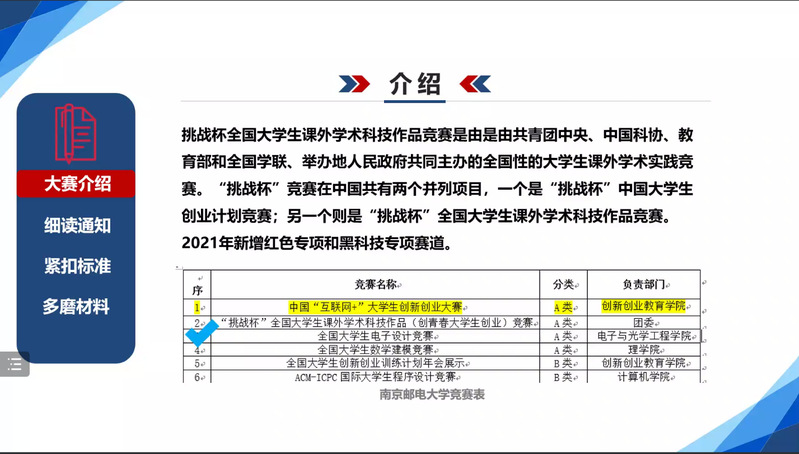 至此,黑料 第118、119期菁英人才学校第八次授课圆满结束。通过本次课程,同学们对“挑战杯”与“互联网+”竞赛的流程与规则、竞赛过程中如何取得高分等细节有了一定的了解。希望能有更多同学积极参与创新创业大赛,培养自我创新能力,以建设科技强国为己任,踔厉奋发、笃行不怠,为科技创新事业贡献青春力量、书写无悔青春。
