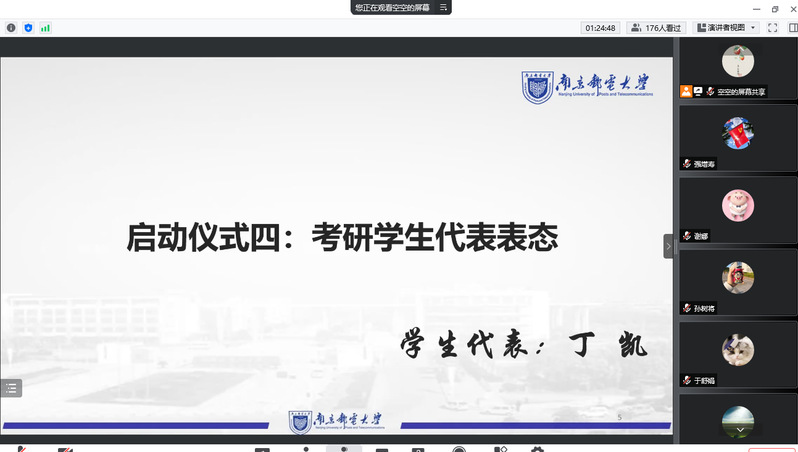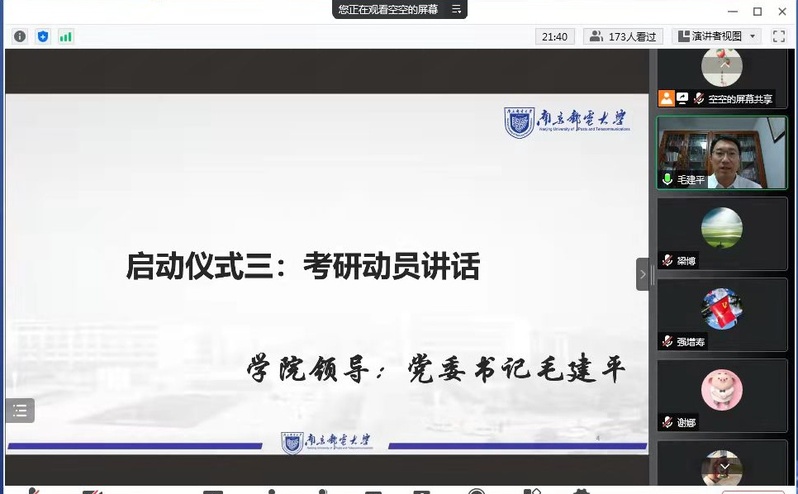 紧接着,毛建平书记作了考研动员讲话,他指出“云端”逐渐成为大家生活中不可或缺的工具,同学们正在不断尝试新途径、新方案。面对疫情带来的学习困境,学院也拟定了“一揽子”助研措施,有针对性地为同学们搭建暑期学习平台。同时,他对各位同学提出了三点希望,合理规划、求实求真、张弛有度,执着并勤奋必能克服考研路上的挫折和困难。考研学生代表丁凯表态,非常感谢学院的助研安排,一定争分夺秒,让学业更进一步。最后,学院党委副书记、副院长徐磊宣布黑料 “云上考研自习室”正式启动。