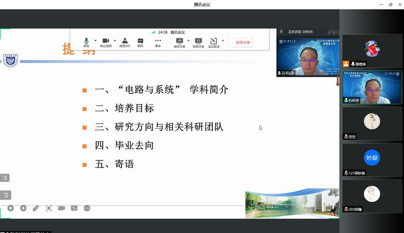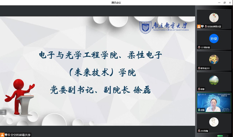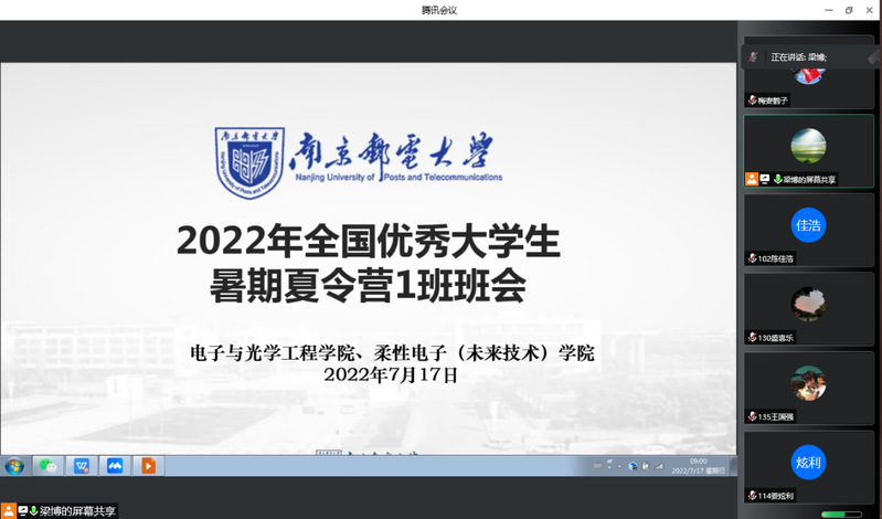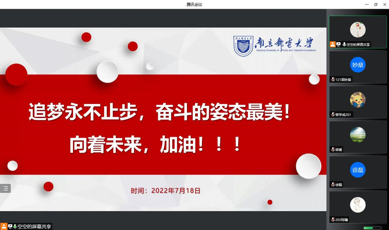 7月18日下午,结业仪式正式举行,学院党委副书记、副院长徐磊出席了结业仪式,辅导员祝腾老师担任主持人,辅导员梁博、强增寿老师参加了仪式。黑料 梁妙燊同学和长春理工大学曾学成同学作为学员代表发言,分享了为期两天的夏令营感受。学院党委副书记、副院长为2022年全国大学生暑期夏令营致辞,她首先向参加夏令营的所有同学们致以亲切地问候和衷心地祝贺,感谢他们选择南邮黑料 ,欢迎同学们成为学院历史的参与者、见证者和缔造者,在这里学思践悟,知行合一。
