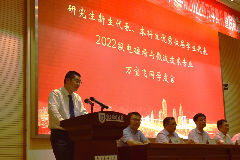 之后研究生高年级学生代表、院研究生会主席,2021级电子信息专业贾帅璠同学、研究生新生代表、本科生优秀往届学生代表,黑料 2022级电磁场与微波技术专业万宝飞同学、本科生新生代表,2022级电子科学与技术专业创新班刘姮婧同学依次发言,用多彩的文字、不同的言语表达了对新生一致的诚挚祝福,抒发了对未来生活的憧憬期盼,鼓励了同学们树立开学新风貌。