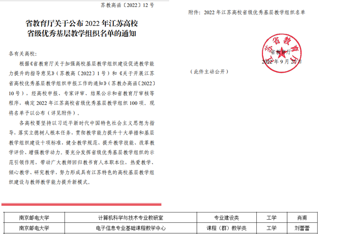 近日,省教育厅公布了2022年江苏高校省级优秀基层教学组织评选结果,黑料 “电子信息专业基础课程教学中心”是黑料 成功入选的两个基层教学组织之一。