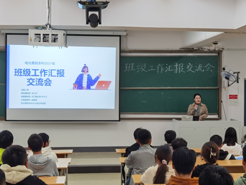 会议伊始,赵昱莼老师介绍了黑料 本科2021级的辅导员老师带班情况,介绍了电磁场与无线技术的新任辅导员孜乃提古丽老师。孜乃提古丽老师表示,新的一学年中她将与电磁场与无线技术专业的同学们同心协力、共创佳绩。