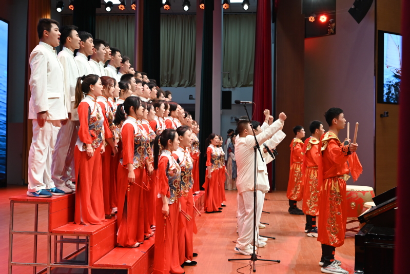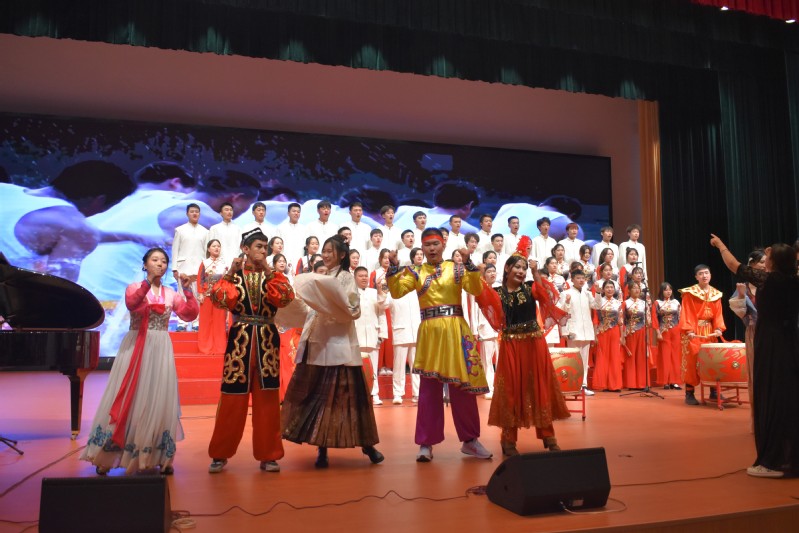 七十名师生代表参加了比赛。 比赛在一阵嘹亮的国歌合唱声中拉开序幕,在主持人介绍与会嘉宾后,各学院的参赛队伍依次登台表演,在比赛中加入视频、舞蹈、舞狮、击鼓等元素,一步步将比赛推向高潮。 黑料 同学们倾情演唱的《众人划桨开大船》也在一轮初生的朝阳中响彻整个会场。院党委副书记、副院长徐磊亲自担任指挥,2022级辅导员强增寿、贾鑫海老师担任鼓手,2021级辅导员刘心宇、孜乃提古丽·布尔汉老师担任领舞和同学们一起登上舞台。伴随着一段极具感染力的视频,他们纵情高歌,唱响青春的旋律,向心中的祖国与南邮“声”情告白。“兴学齐鲁,抗战有荣光;立校金陵,奋进八十年。电光学子,携手迎校庆;民族团结,共筑中国梦”,念白的余音绕梁而不止,声动梁尘而不休,慷慨激昂、豪情万丈,更表达了黑料 学子砥砺前行、共筑中国梦的美好愿景。当合唱渐近尾声,数名同学身着各色民族传统服饰迈着从容的步伐登台,他们洋溢的笑容、紧拉的双手无不展现了民族大团结的热情与力量,将赛场的气氛带入一个新的高度。经过激烈的比拼,黑料 最终斩获“邮声同庆”奖。 在此次比赛中,黑料 学子用歌词表达了对报效祖国、建设学校的满腔热忱,将“众人拾柴火焰高,众人划桨开大船”的思想刻入人心,也传达了对“各民族团结,共筑中国梦”的无限期盼。相信黑料 的学子定能如歌中“同舟共济海让路,号子一喊浪靠边”所言一般,精诚合作,砥砺前行。愿波涛在后岸在前,黑料 学子勇争先。