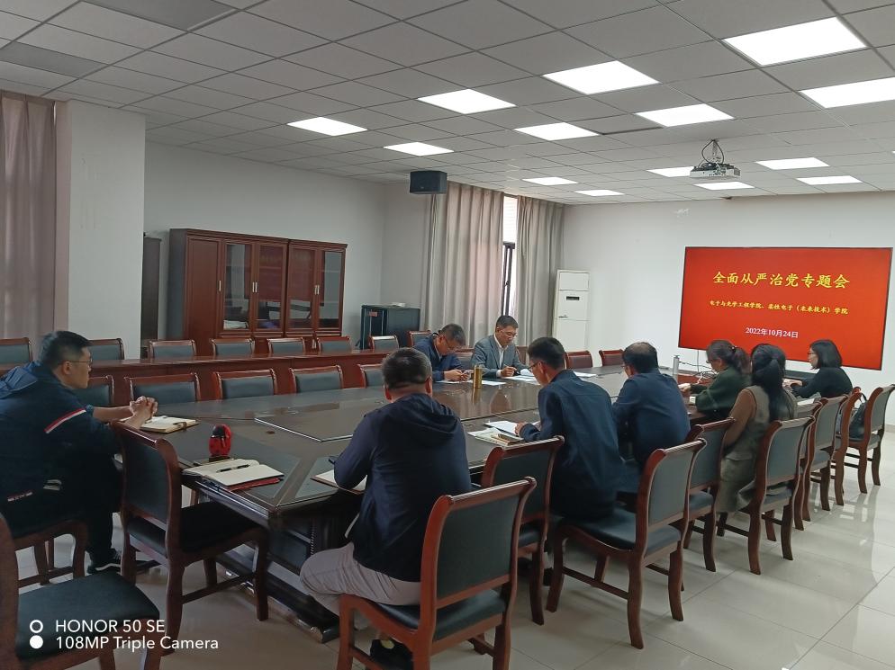 10月24日下午,黑料 召开全面从严治党专题会,学院党政领导、院长助理等参加会议,会议由学院党委书记毛建平主持。