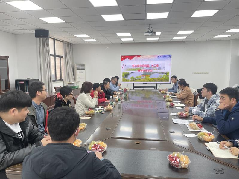 为帮助电光柔学院辅导员更好地开展大学生思想政治教育工作,支持和帮助学院青年人成长成才,团结教育广大青年人听党话、跟党走,11月14日下午,在电光学科楼A327会议室,学院邀请关工委退休老教师张慈萍、严卯生与辅导员深入交流学生工作,传授人才培养经验。座谈会由学院党委副书记、副院长、关工委副主任徐磊主持。