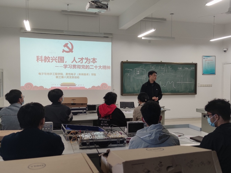 2022年11月16日下午,黑料 教工第八党支部结合党的二十大报告中“实施科教兴国战略,强化现代化建设人才支撑”相关内容,在校内开展了“科教兴国,人才为本”学习贯彻党的二十大精神主题党日活动。