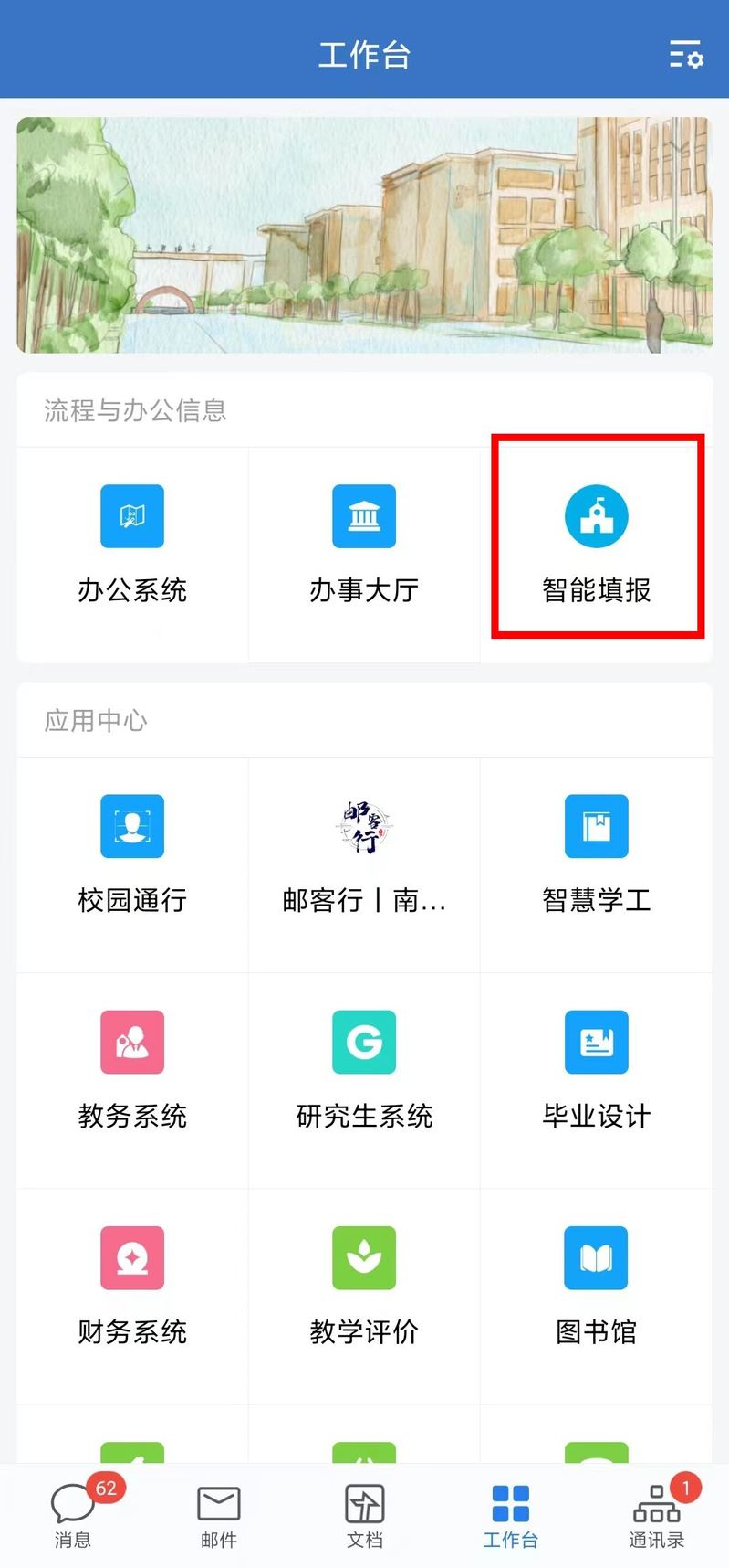 或者在智慧校园网页的智能填报中预约,如图。