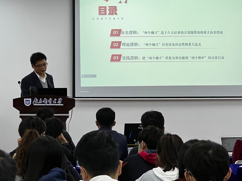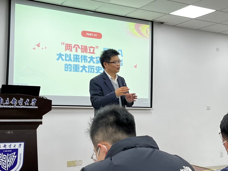 为引导学院师生深入学习贯彻党的二十大精神,11月23日下午,南京邮电大学马克思主义学院党委书记沈召前教授为黑料 青年师生作题为“深刻把握‘两个确立’,坚决做到‘两个维护’——二十大精神学习”的报告。本次报告会在线上线下同步进行,线下于黑料 电光学科楼B322会议室开展。学院全体辅导员老师、学生党员代表、黑料 第140期菁英人才全体学员参会。