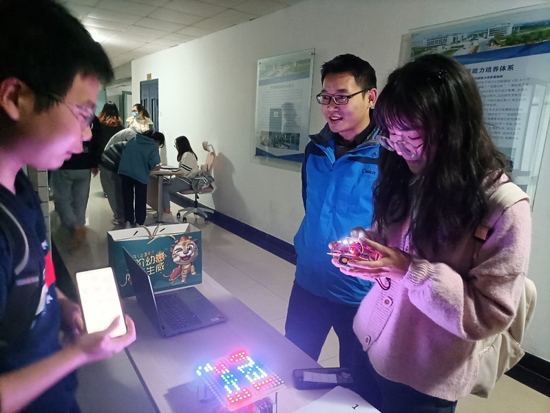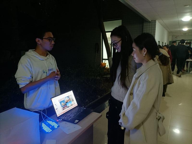 为给同学们提供更充分展示科技成果的平台,吸引更多同学加入到科技制作的队伍中来,11月26日,黑料 于教三西侧走廊开展了第二十七届“‘芯‘火相传”LED灯设计大赛暨第一届“‘芯灵感应’无线通信大赛作品巡展会。受邀参与本次巡展评审嘉宾的有黑料 创新中心副主任陈建飞、分团委书记肖俊桂、院科协指导老师刘振、2019级辅导员梁博、强增寿、2021级辅导员赵昱莼。