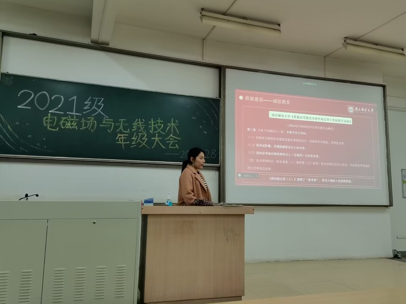 时值大雪,岁末临近,期末周的紧张氛围也愈发强烈。为了调节同学们对待期末考试的心态,合理认清当前的学习状态,增强同学们的年终安全意识,12月8日,黑料 2021级电磁场与无线技术专业召开年级大会,大会由2021级辅导员孜乃提古丽·布尔汉主持。本次大会线上线下同步进行,线下在教3-520开展,2021级电磁场与无线技术专业全体同学参会。