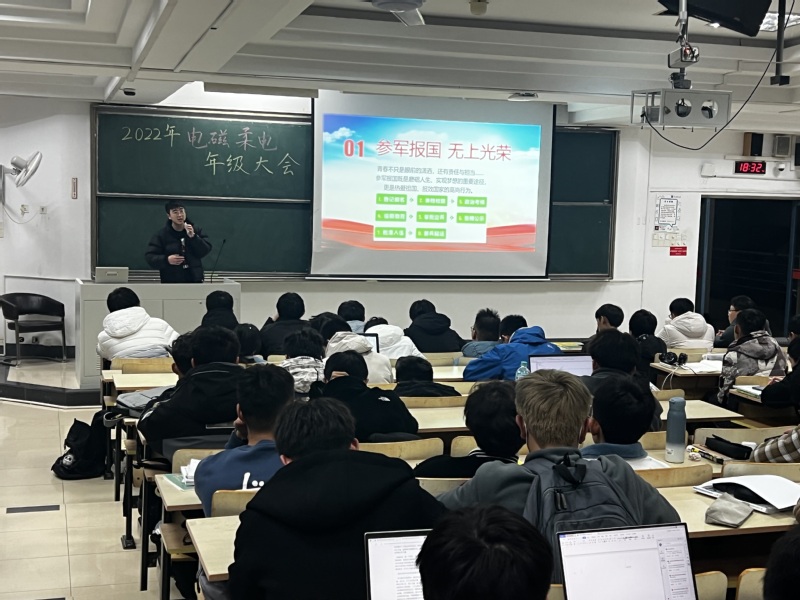 12月8日晚,黑料 2022级电磁场与无线技术、柔性电子学专业在教二201召开“笃行不怠勇追梦、自信自强向未来”主题年级大会,大会由贾鑫海老师主持,2022级电磁场与无线技术、柔性电子学专业全体学生参加。