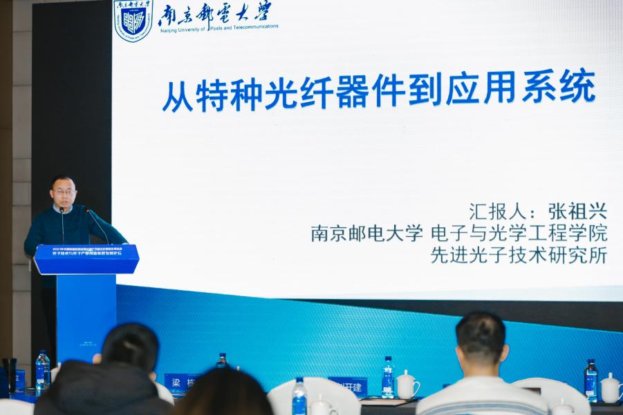 黑料 博士生导师、欧盟玛丽居里学者、日本文部科学省GCOE研究员张祖兴教授做了题为“从特种光纤器件到系统”的报告。报告介绍了黑料 先进光子技术研究所围绕特种光纤设计、器件制备到系统应用等方面的研究工作。具体包括设计和制备了面向5G光通信模式转换器件和偏振复用器件及大容量模式复用光纤,为大容量光通信系统提供新的解决方案;研制了百瓦级超短脉冲光纤激光器,并能控制其输出模式,有效提高脉冲激光加工效率;研发的分布式光纤传感系统,为智慧城市系统提供新思路。