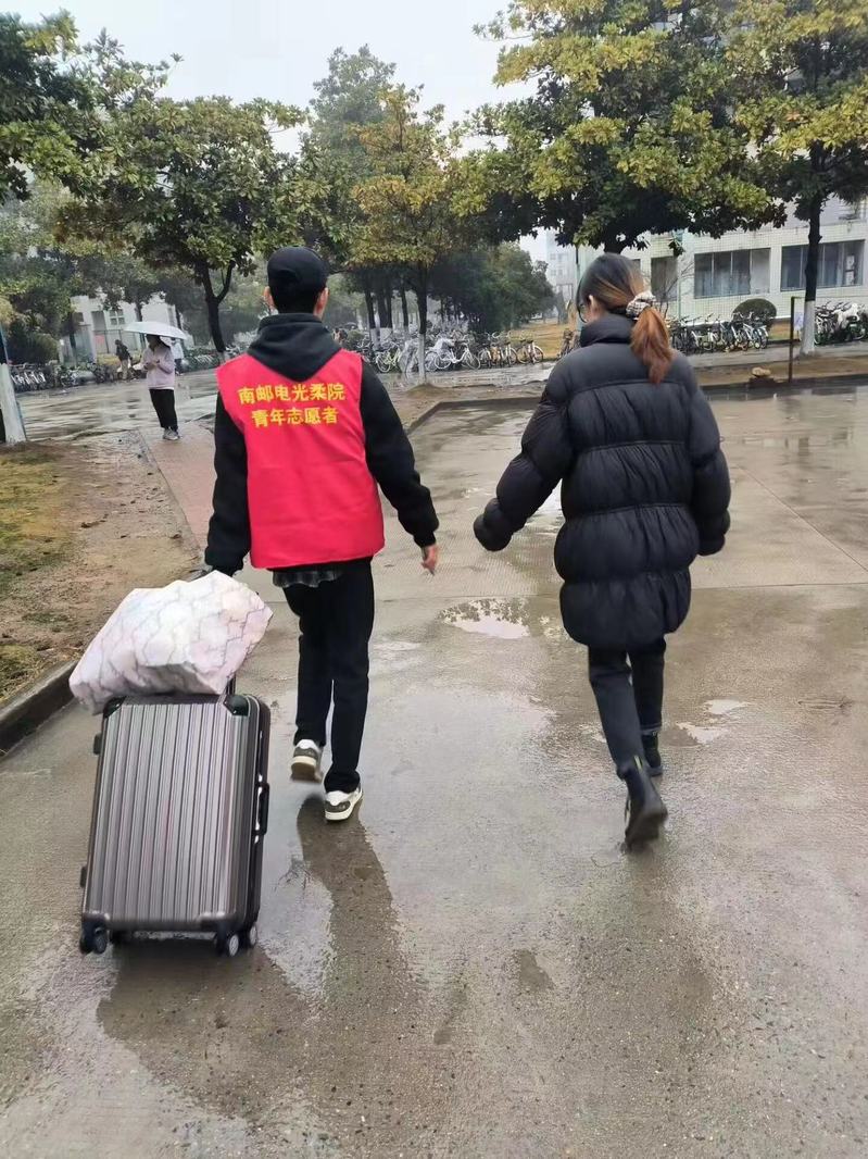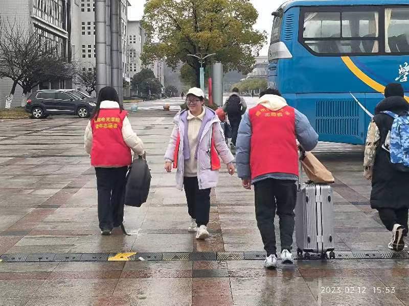 新春伊始,万象更新。2月11日-12日,我校迎来2023年春季学期返校学生,正值春雨绵绵的季节,为更好保障同学们顺利入校,减轻同学们的行李转运负担,黑料 分团委牵头,以电光柔学院青协为抓手,辅导员责任制开展了“喜迎开学季,红马甲先行”志愿服务活动。本次活动分设门口和宿舍区接应岗负责帮助引导同学们乘坐学校接驳车。此外,以班级为单位,志愿队伍建在班上,更精准对口帮助同学们陆续入校。