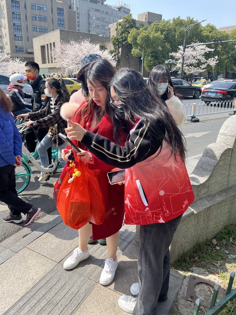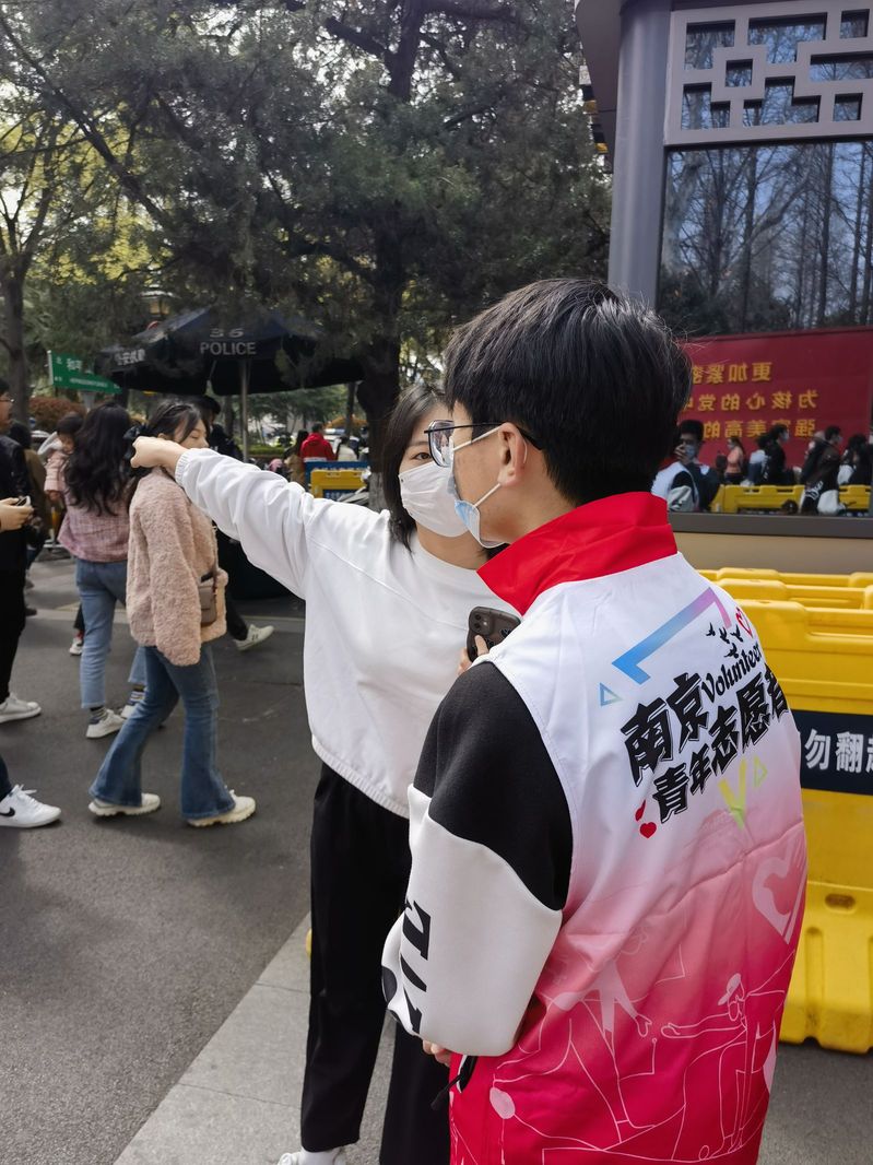 野棠开未落,山樱发欲然,本次活动的志愿者们热情高涨,短短一小时内迅速集结了32名同学参与。其中,青年志愿者协会活动部中干赵健同学作为青协联络人与组织者,选派徐升扬、胡杨、段啸寒,刘问天四位同学为小队长,志愿者们身穿特色文化衫,分布在玄武湖附近文学客厅、古生物博物馆、玄武门、玄武湖黄库策展四地,为每一位前来打卡的游客提供服务。)
