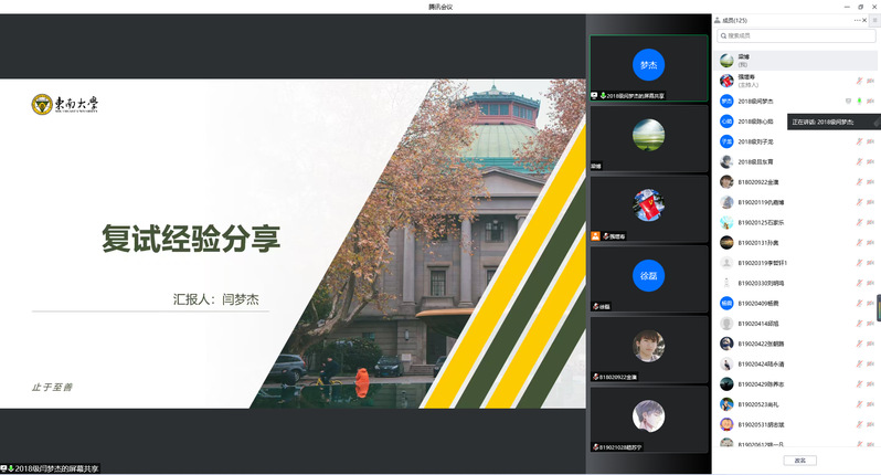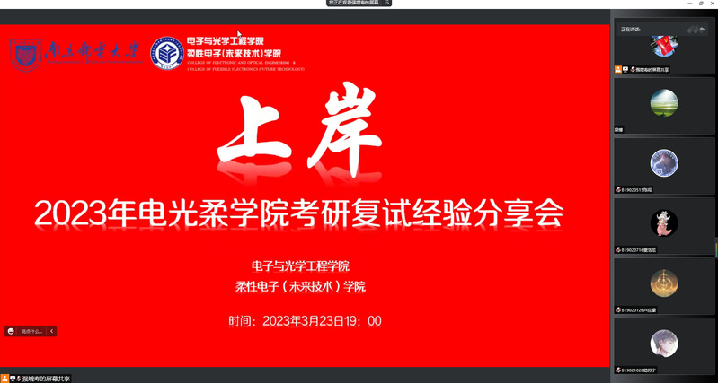 随后,来自东南大学、电子科技大学、北京邮电大学、黑料 的5位黑料 优秀毕业生依次围绕自我介绍、备考指南、复试心态、选择导师、注意事项等方面分享了自身实际经验。5位同学分别考取不同的高校,他们根据各自的复试经历,提醒同学们需要注意保持良好的心态,临场不要怯场,提前做好各项笔面试的细节准备。