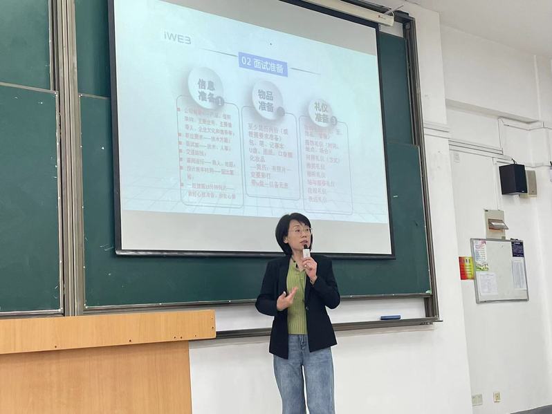 为提高同学们的就业能力,3月27日下午,黑料 在教4-414开展“‘职’通未来”主题讲座,徐庄软件园艾瑞实训中心人力资源总监孟丽敏担任主讲人,讲座由2020级辅导员肖俊桂老师主持。