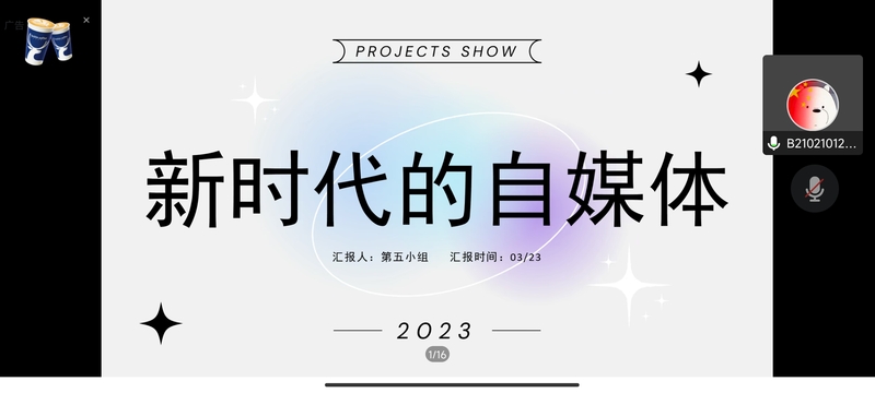 本次课程共有十三个小组参与展示。围绕“新时代,新青年”,课程展示内容分为三大模块:“如何度过大学生活”、“正确运用新传媒”和“争做新时代新青年”。