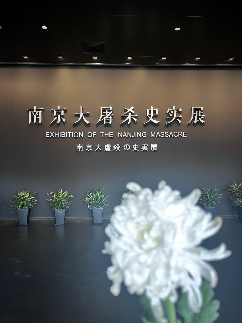 入馆前,每个同学为纪念馆和罹难同胞们捐出了自己的心意的同时,又领取了将要献给罹难同胞们的白菊。春风吹动白菊,花瓣微动,诉说着1937年的悲哀。进入场馆,被映入眼帘的逝者名录所震撼,似乎就看到当年无数可怜的中国百姓,一个接着一个地倒在了血泊之中的场景。于此时此景,大家纷纷将手中的白菊献上,为逝者低头默哀。