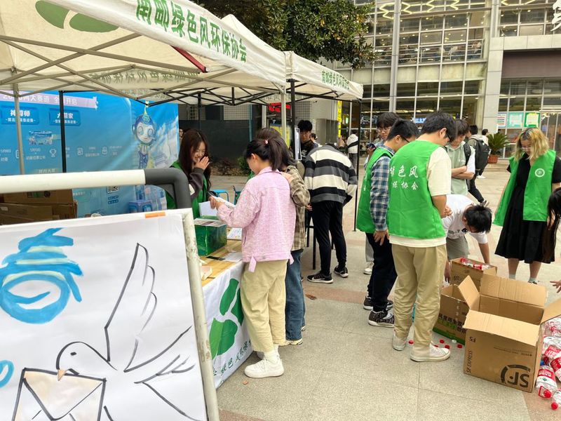 4月14日,黑料 绿色风环保协会在南二食堂外场举办绿色寝室环保主题活动,吸引了众多同学参与。