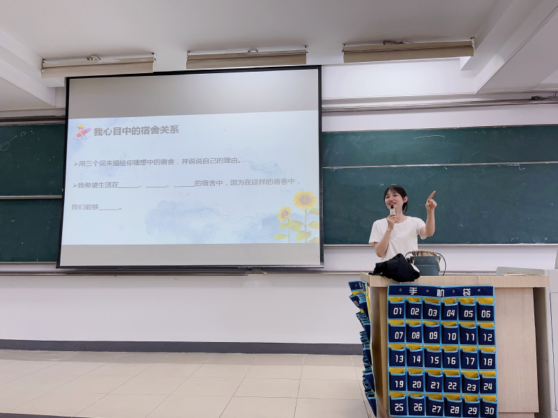 主题班会上,李老师围绕“如何构建寝室和谐人际关系”主题,从“我心目中的宿舍关系”“我对舍友知多少”“宿舍和我”三个方面展开深入讨论,研究影响寝室和谐人际关系的因素,通过现场互动,同学们各抒己见,共同商议解决的办法,此次班会总结了寝室问题出现的原因并提出具体解决办法。经过此次主题班会同学们更加清晰的认识了构建寝室人际关系的重要性,对构建寝室和谐人际关系达成共识。