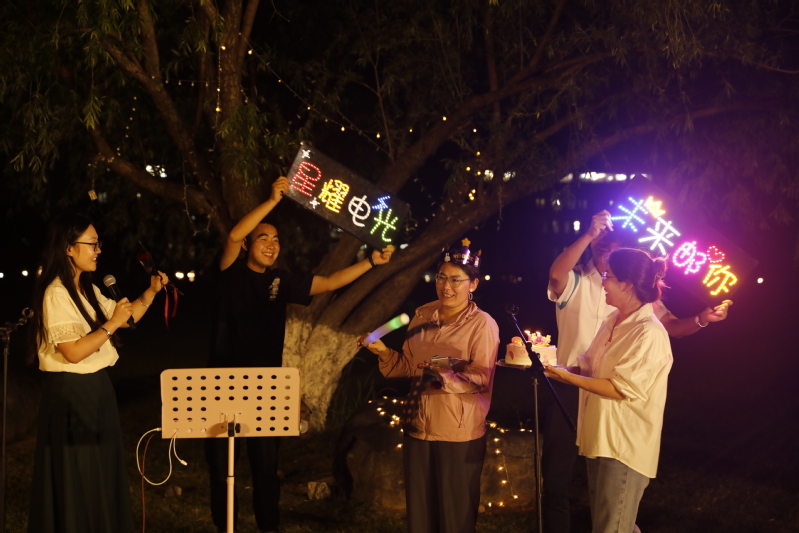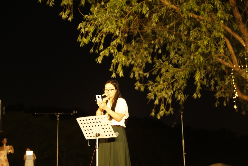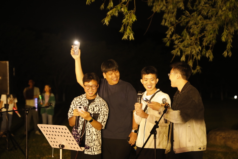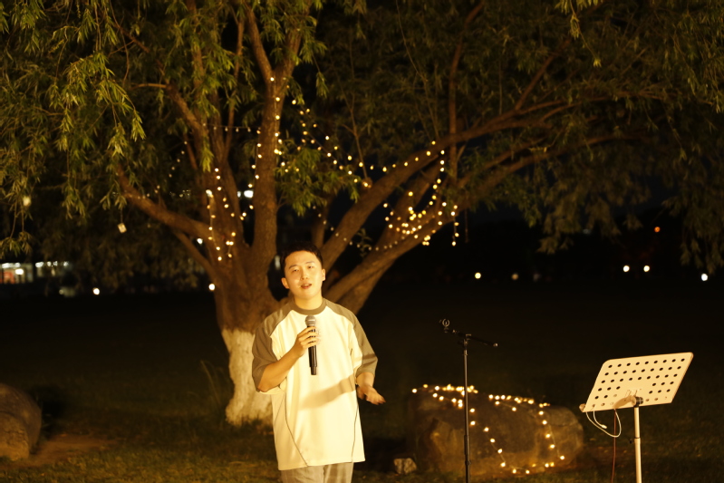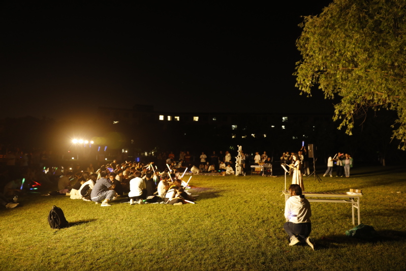固定表演的曲目很快结束,在自由麦环节,柚子们的热情依然不减。清新悠扬的旋律涤荡着灵魂,娓娓流泻的歌词诉说着感动。每首歌都言自一分悸动,无一家之言,却同样触及灵魂。有的怨慕婉转,有的声动九霄;有追忆重现的深情,有抚慰心底的温暖;有青春活泼的欢乐颂,亦有诉及往事的追忆曲。许愿树下余音袅袅,不绝如缕。旧音方散,新歌又起,同学们个个跃跃欲试,自信地在舞台上高声吟唱。外场上路人们也纷纷驻足观望,让慕名而来的听众站到了草坪之外。直至原定期限延后很久,这场音乐盛会在同学们的唯美歌声中落下帷幕。