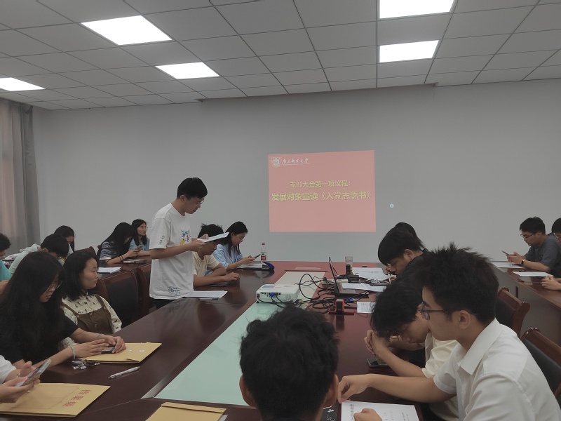 会议按照规定流程进行。首先是发展对象逐一宣读《入党志愿书》,依次汇报对党的认识、入党动机、本人履历和在培养考察期间的表现,提出成为预备党员的申请。随后入党介绍人刘心宇、孜乃提古丽·布尔汉、赵昱莼三位同志向大会依次介绍雷蕾等23位发展对象的近阶段培养情况,肯定了他们一年来的表现,并指出存在的不足,对是否同意其入党表明态度。接着,孜乃提古丽·布尔汉同志代表支部委员会宣读对雷蕾等23位发展对象的政治审查情况,经支委会研究、学院党委预审,符合程序,材料齐全,可以接收为中共预备党员。
