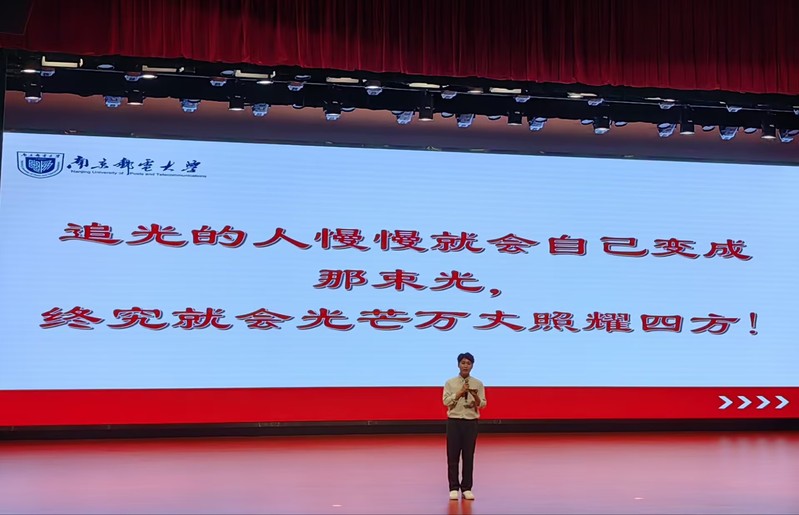 电子与光学工程学院、柔性电子(未来技术) 学院在青春剧场举行2023级主题为“青柚逐梦,邮此启航”梦想公开课主题讲座。本次讲座邀请了马兴杰、刘显慧、邹同庆、张馨怡、雷蕾等五位优秀学生代表结合自身经历,切合实际、以点带面地为2023级新生指明大学期间努力的方向。新柚子们现场认真聆听。