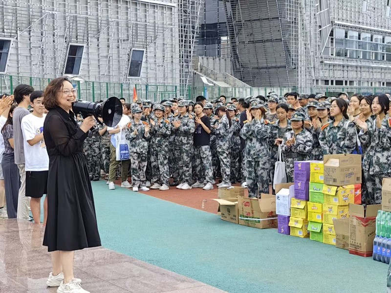此次慰问体现了学院对军训工作的重视,鼓舞了同学们的训练士气,让大家感受到来自学院的关爱和支持,增强了2023级本科新生对电院大家庭的归属感和认同感,坚定了对圆满完成军训任务的信心,激励同学们以自信的姿态和充沛的精力投入到接下来的学习生活中,不断克服困难,创造更好的明天。