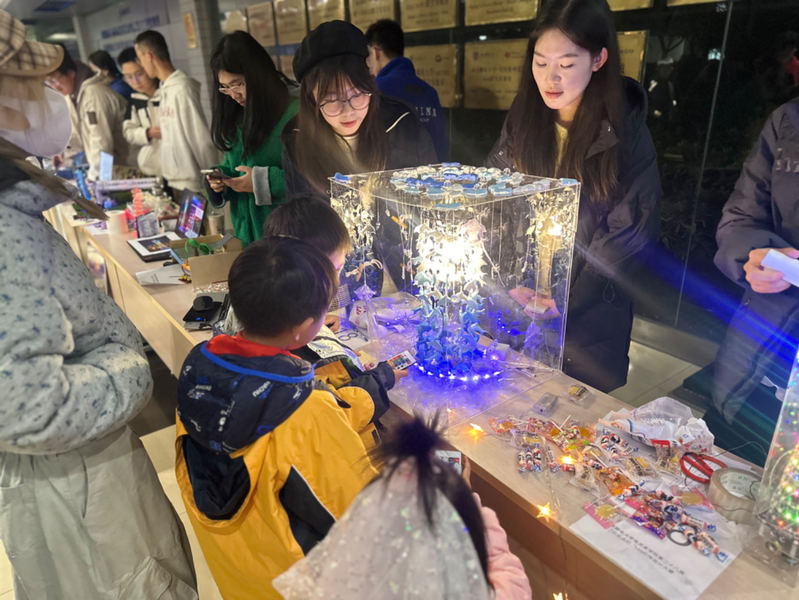 在巡展启动后,80名小学生与家长一同参与,观摩了灯展并为各自心仪的队伍投出了宝贵的一票。此外,已入场的大学生通过领取纸质票或线上投票的方式,对支持的队伍进行投票。比赛进行中,参赛学生及指导员齐聚一堂,共同留下了难忘的合照。最终,评委对所有参赛队伍进行了的评分。