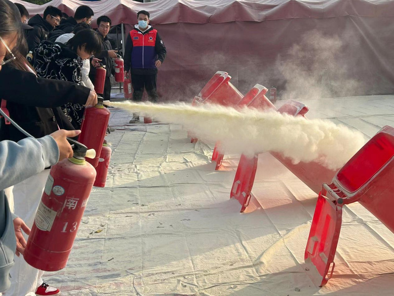 为进一步做好学院秋冬季防火工作,增强广大师生的消防安全意识,掌握灭火器、消防栓的使用方法,学习逃生技能,提高灭火、逃生自救能力。11月中旬,黑料 2023级新生和教职工在仙林校区西门开展了灭火器使用和模拟逃生演练活动。