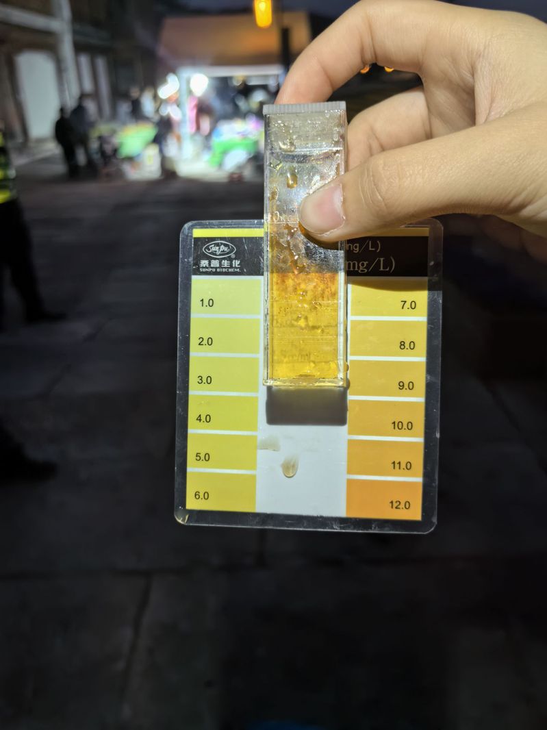 趁着太阳余晖,NP部的几名成员先完成了水质检测的任务,PH为6.5,氨氮含量0.2, 溶解氧含量8.0-9.0,磷酸盐含量为0.15,数据整体正常,检测完毕,沿河巡视2公里,最终完成巡河任务。