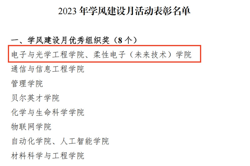 经学院积极组织申报,学生工作部审核差额评审,黑料 荣获“学风建设月优秀组织奖”;“黑料 ‘邮’爱学堂学习帮扶培养计划”、“‘怀木铎之心,守弦歌不辍’——黑料 2023级开展光电信息科学与工程专业育新计划”两项活动荣获“学风建设月特色品牌活动奖”;祝腾、梁博两位辅导员老师荣获“学风建设月优秀指导教师”称号;10个班级荣获“学风建设月先进班级”称号;123位同学荣获“学风建设月先进个人”称号。
