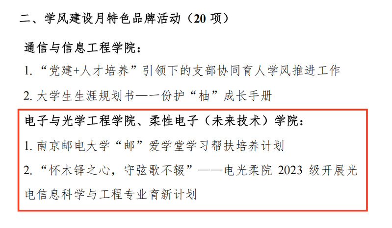为全面贯彻落实党的二十大精神和习近平总书记关于教育的重要论述,以全面实施“时代新人铸魂工程”为牵引,落实立德树人根本任务,紧密围绕学校人才培养目标,持续推进“学在南邮”学风建设,进一步营造勤奋、求实、进取、创新的优良校风,学校于2023年9月-10月开展学风建设月专项活动。