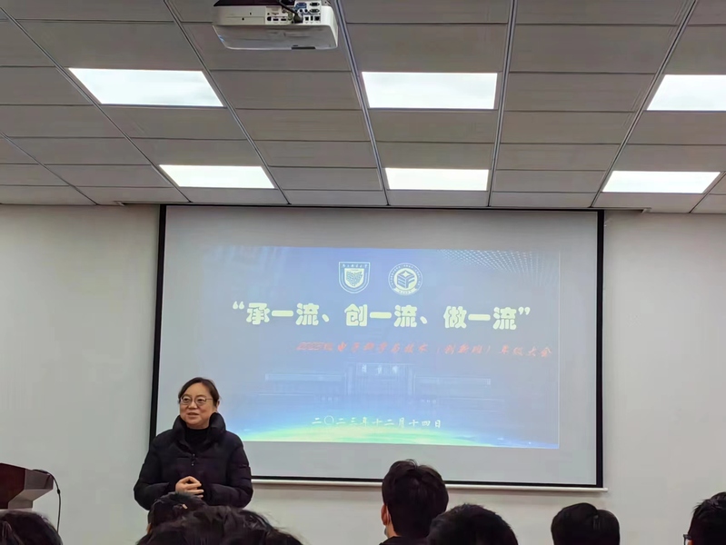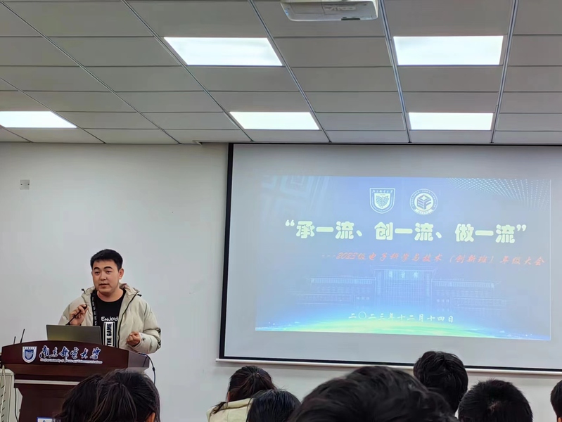 12月14日下午,黑料 2023级电子科学与技术(创新班)在电光楼B322召开了“承一流,创一流,做一流”主题班会暨年级大会。会议由辅导员强增寿老师主持,学院党委副书记、副院长徐磊,班主任王龙禄副教授参加了本次会议,会议还邀请了霍程阳、李梦竹、李静文、殷葳楠、孙宁五位优秀学长学姐进行学习和生涯经验分享。