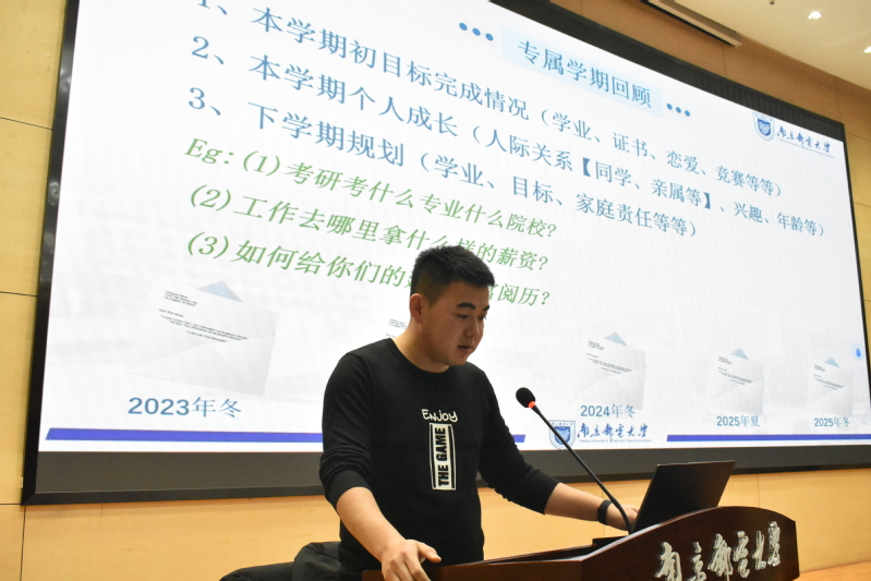 会议开始前,各班班长首先组织各班同学拍摄了本学期的班级合照,记录了2023年专属于2022级小柚子们的笑脸。随后,本次年级大会正式开始,强增寿老师引导同学们回顾即将过去的2023年,并给每个同学发放了属于自己的信封,记录下本学期已经完成的目标、个人成长情况以及对2024年的规划和展望。