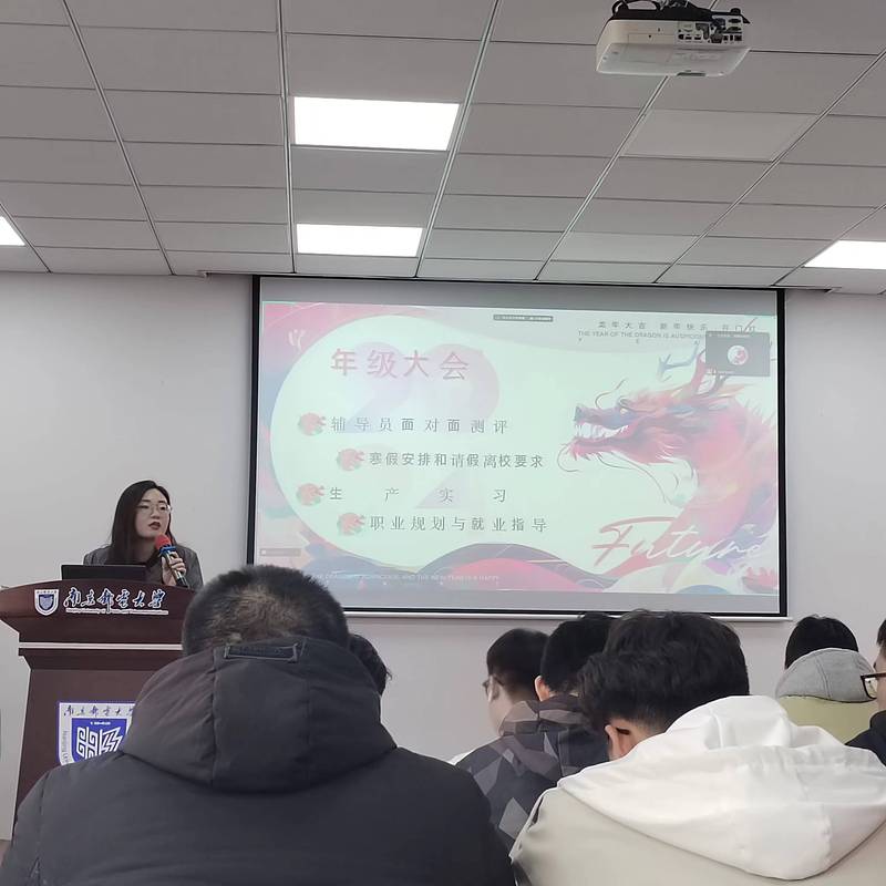 最后,肖老师对毕业班生产实习、上课制度、请假制度、宿舍安全、网络文明等提出要求,并再次强调意识形态工作和安全防诈工作的重要性,鼓励同学们珍惜已进入倒计时状态的在校时光,做好学弟学妹们的前行榜样。