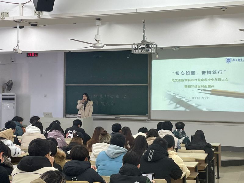 大雪压青松,青松挺且直;时光荏苒,砥砺前行,12月20日下午,黑料 本科2021级电子科学与技术专业第一学期年级大会暨辅导员面对面测评在教2-309和教3-515顺利开展。大会主题为“初心如磐,奋楫笃行”,由辅导员刘心宇主持,2021级电子科学与技术专业全体同学参加。本次会议从多方面总结了这一学期各项工作与成果,也为同学们接下来的学习生活坚定了信念,指明了目标,激励同学们脚踏实地,勤奋笃学,不负韶华。