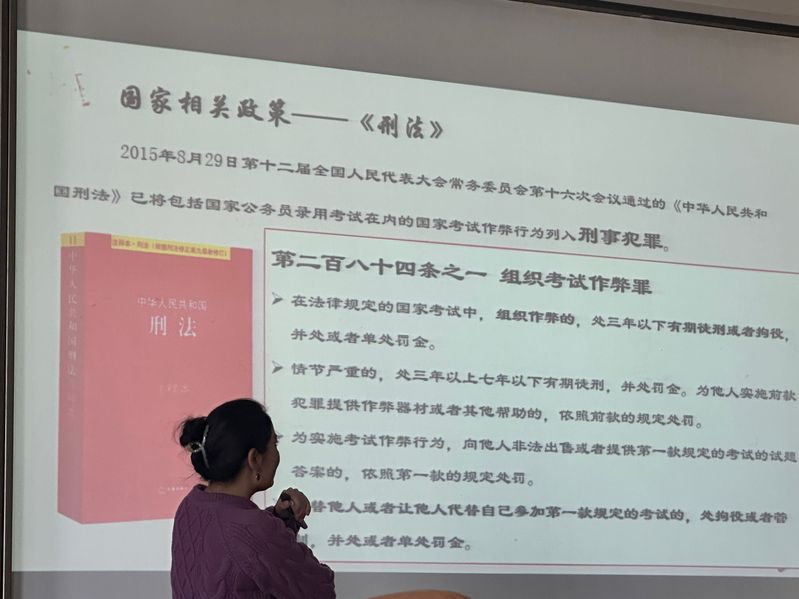 会议伊始,古丽老师强调了考试规范的相关政策,注重讲解了刑法修正案(九)、《黑料 考试纪律和考试违纪处理规定》中对考试作弊行为的明确规定和处罚标准。随后,通过六则生动鲜明的案例,古丽老师向同学们深刻诠释了六种作弊行为的认定与相关的处罚,要求同学们在考试过程中严格遵守考试规章制度,实事求是,杜绝一切考试作弊形式,要弘扬诚信正义。最后,全体同学起立,庄严宣誓:“将牢记南邮校训,坚守南邮精神,自觉遵守考试纪律和考场秩序,做堂堂正正南邮人!”,字字句句,掷地有声,铿锵有力。