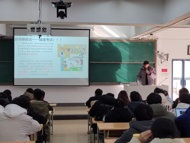 为严肃考风考纪,进一步提升同学们的诚信意识,12月20日下午,黑料 本科2021级光电信息科学与工程专业年级大会在教四102顺利举行。辅导员赵昱莼老师主持本次大会,2021级光电信息科学与工程专业全体同学参会。