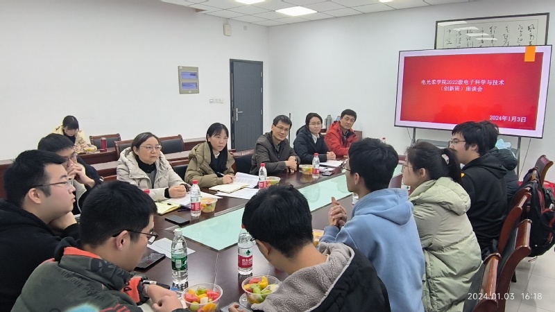1月3日,黑料 2022级电子科学与技术(创新班)B220200班“师生同心、共话成长”座谈会于电光A楼328召开。本次座谈会为校、院领导与联系班级面对面座谈会,出席本次座谈会的校院级领导有赵强副校长,电光柔学院党委书记黄丽亚,工程训练中心主任、电光柔学院副院长程勇,电光柔学院党委副书记、副院长徐磊,电光柔学院副院长刘蕾蕾,电光柔学院副院长刘宁,此外,B220200班班主任李炳祥、辅导员强增寿、B220200班全体同学参加了会议。