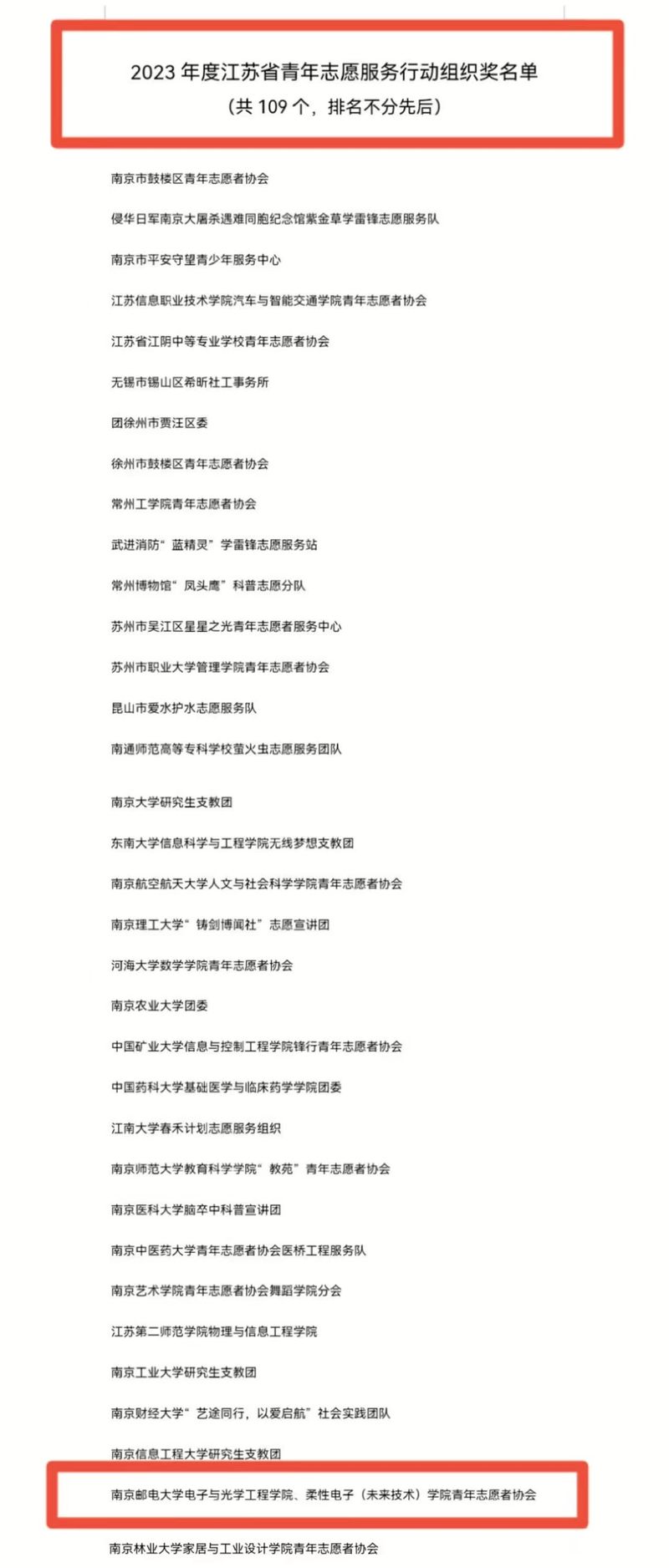 其中,黑料 青年志愿者协会荣获2023年度江苏省“志愿服务行动组织奖”。