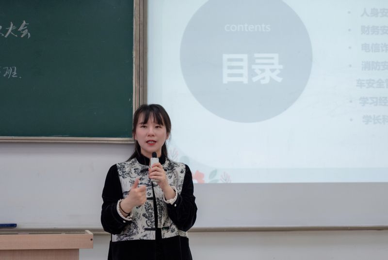 最后,为筑牢安全防线,护航成长。李月老师从食品安全、人身安全、财务安全、消防安全、虚拟网络安全等方面逐一强调,希望每位同学度过平安快乐的大学时光。